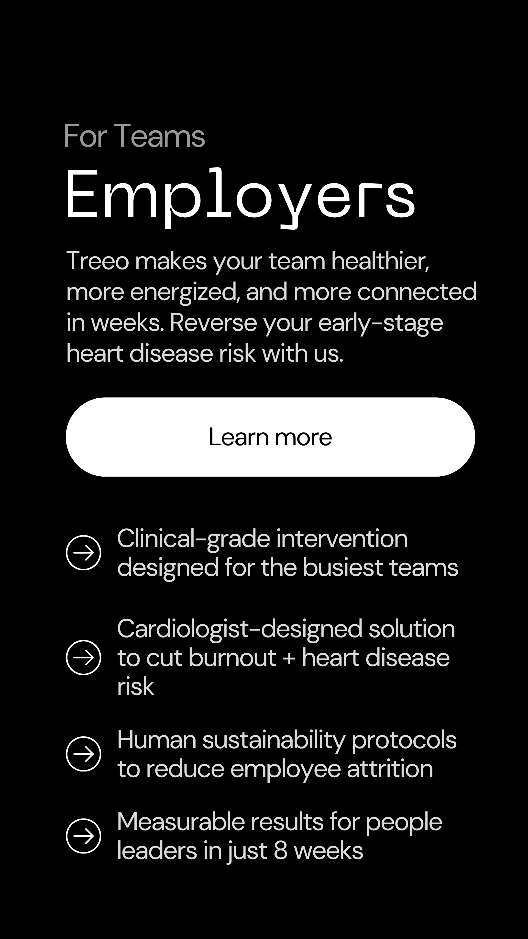 Making a future free from heart disease possible.. Get started. Let’s improve health outcomes together. Starter Guides Breaking down heart disease. Read More The Treeo Podcast Read more Cooking on a budget: starter guide Read more Why has heart disease been the leading cause of death for a century? Listen to the podcast We believe a world free from heart disease starts with education. Stay in touch with us. Get updates when we launch something new. Email Address Sign Up Thank you! + subscribe to The Treeo Pod🫀